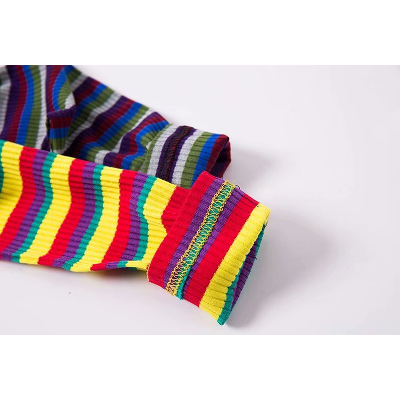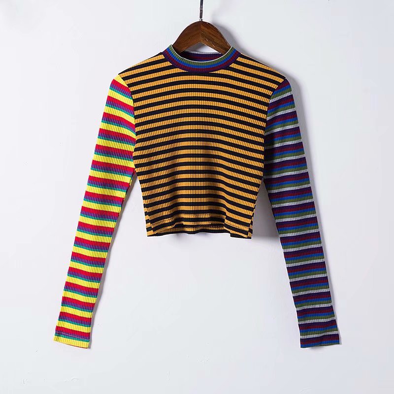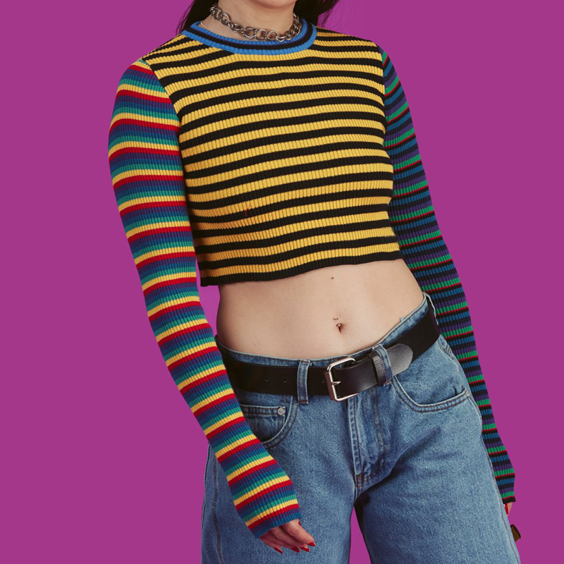 Contrast ribbed crop sweater top with alternating colorways on each panel.