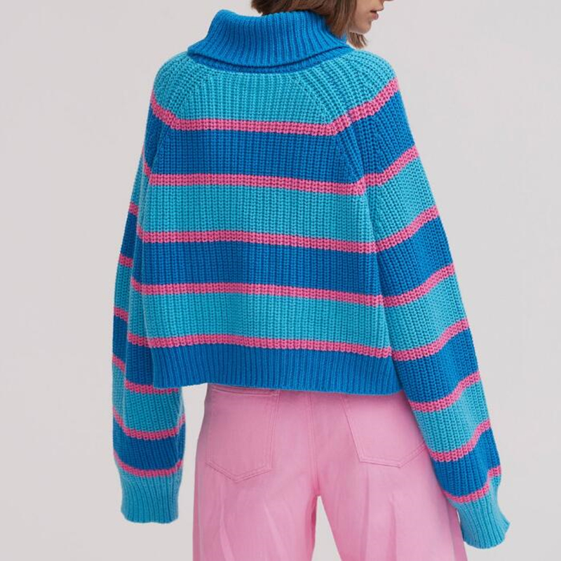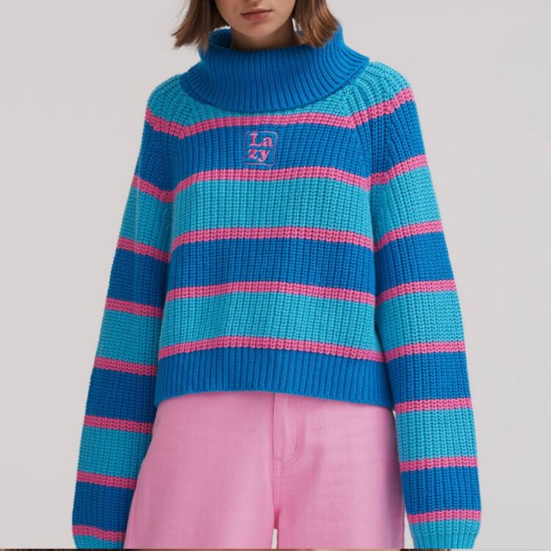 Lazy oaf Stripey Roll Neck Jumper with Embroidered Chunky Knit Pullover Sweater For Women