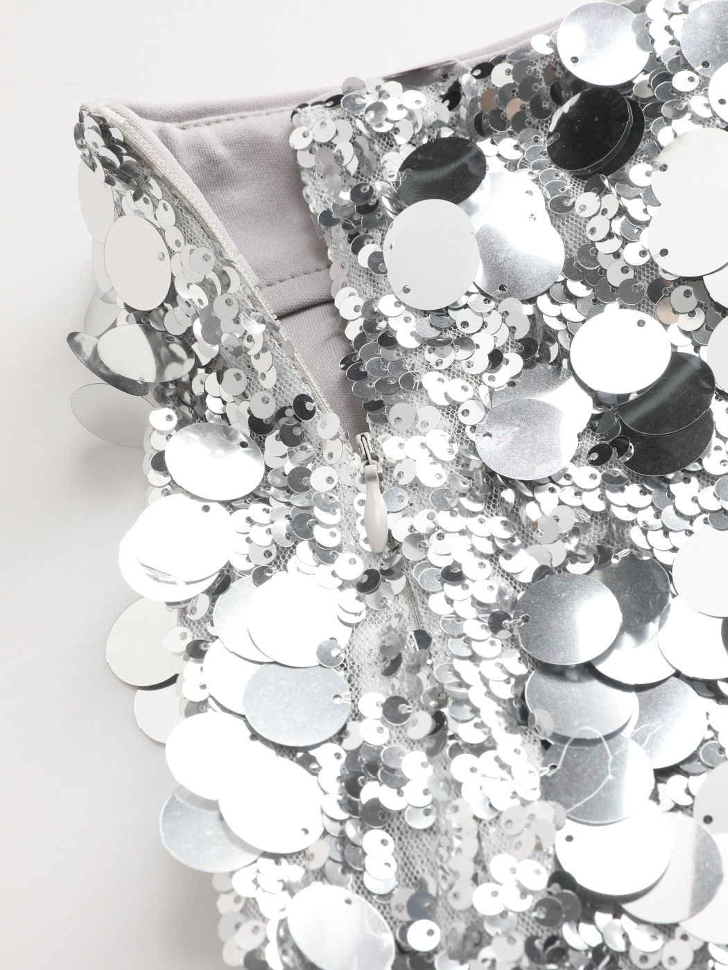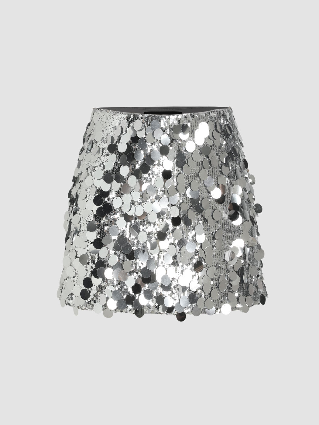Sparkly Silver Sequin Mini Skirt Music Festival Eras Tour Concert Outfit Idea